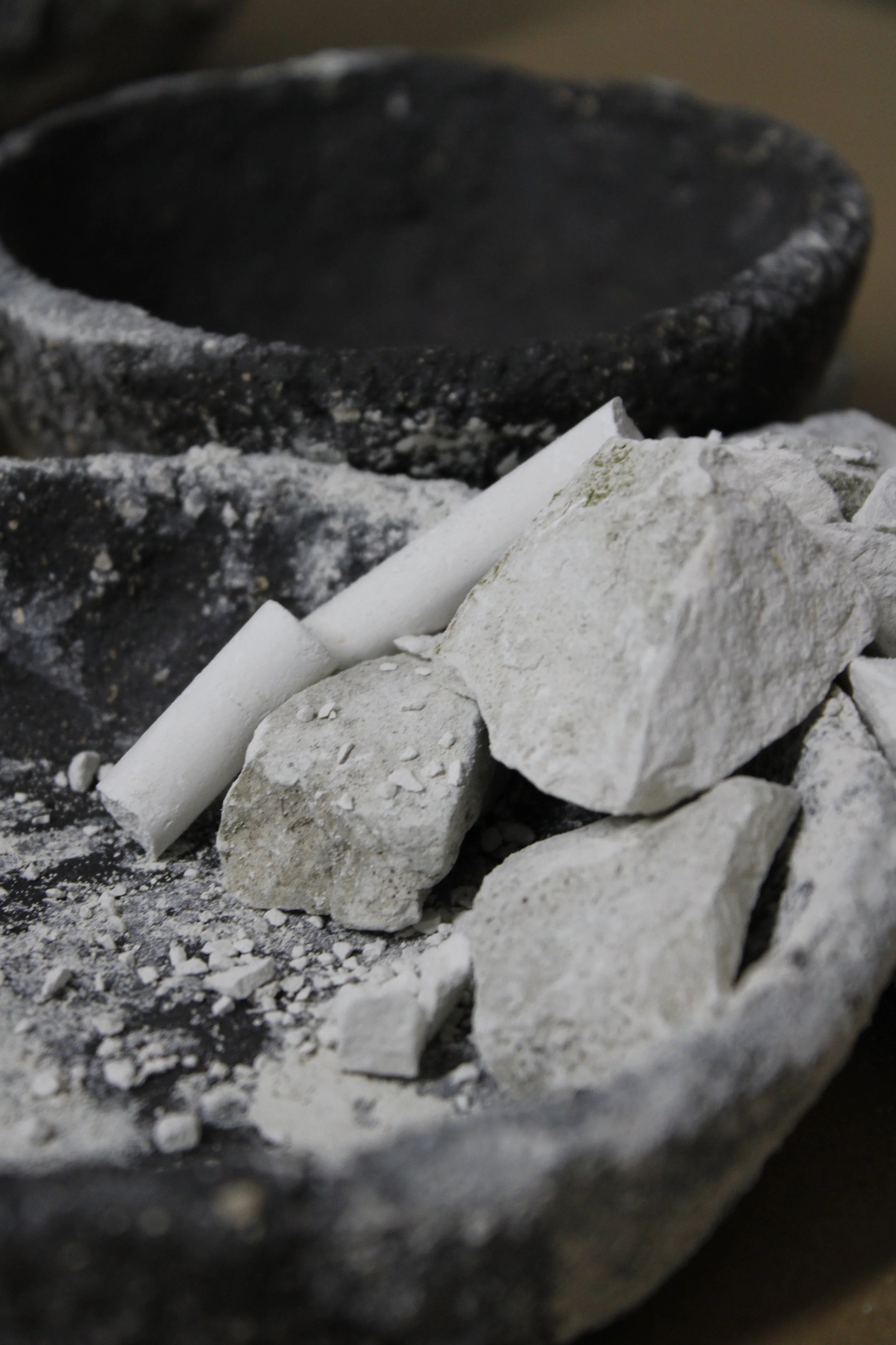 /’A SEA OF CHALK’ is an installation inspired by the Cocking Lime Works chalk quarry in the South Downs, West Sussex. Emerging from this post-industrial landscape, the work reimagines conventional modes of thought through the lens of Édouard Glissant’s Archipelagic Thought, a philosophy that resists linear, continental ways of knowing in favour of multiplicity, connection, and fluidity.